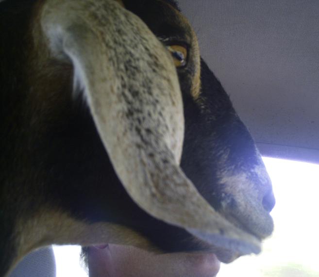 Oh dear! Since my lady has been known to have goats in the back seat of her little car she can fully understand. Dym is just gorgeous and such a good girl!